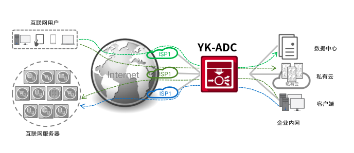 k8凱發通明湖應用交付控制器提供鏈路負載均衡技術(LLB)和全局負載均衡技術(GSLB)分別實現出向流量(Outbound)和入向流量(Inbound)的統一管理。