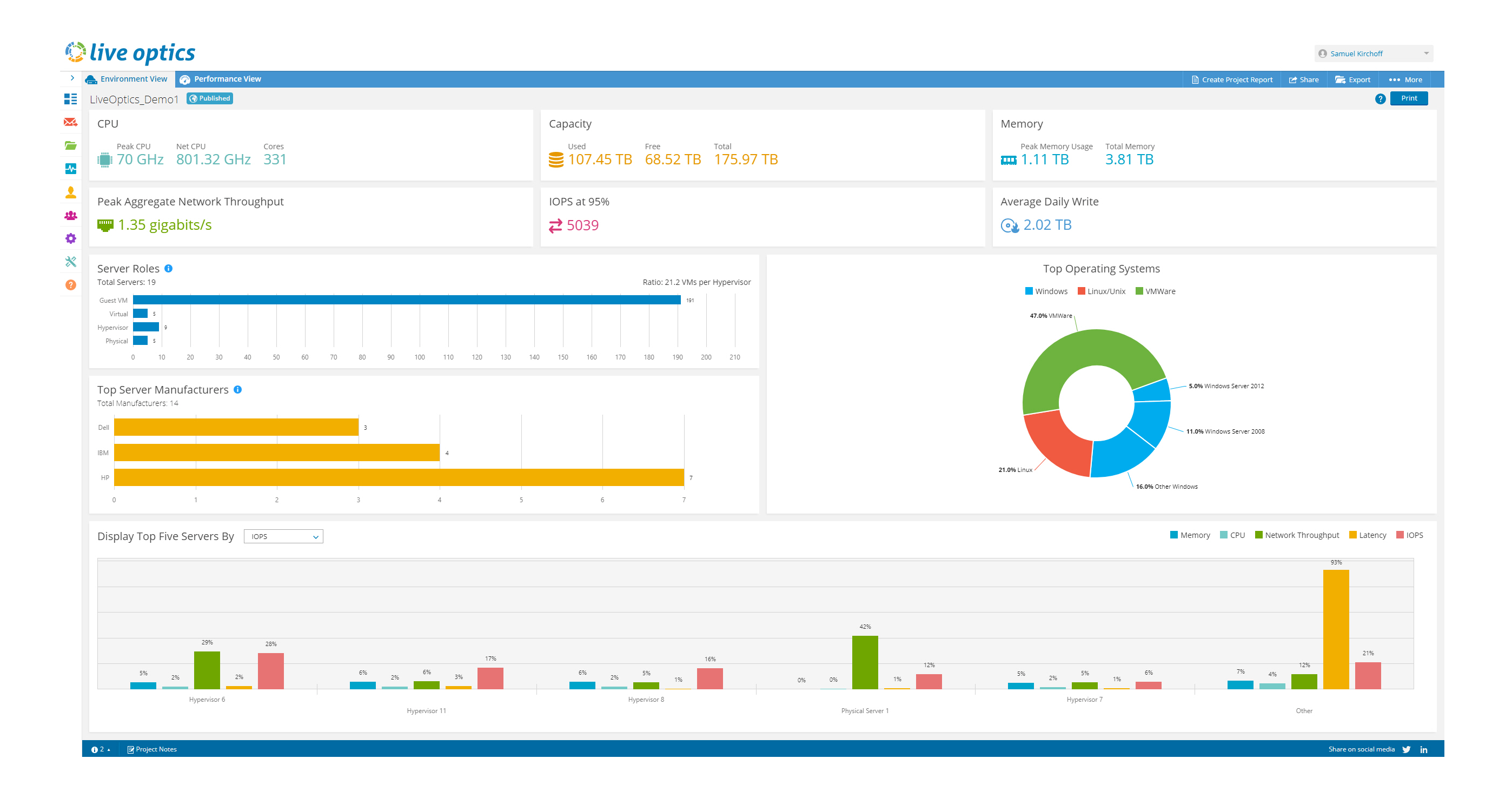 Live Optics 在設計上考慮到了 IT 和業務決策者的需要。利用此功能強大的在線軟件,您可以: